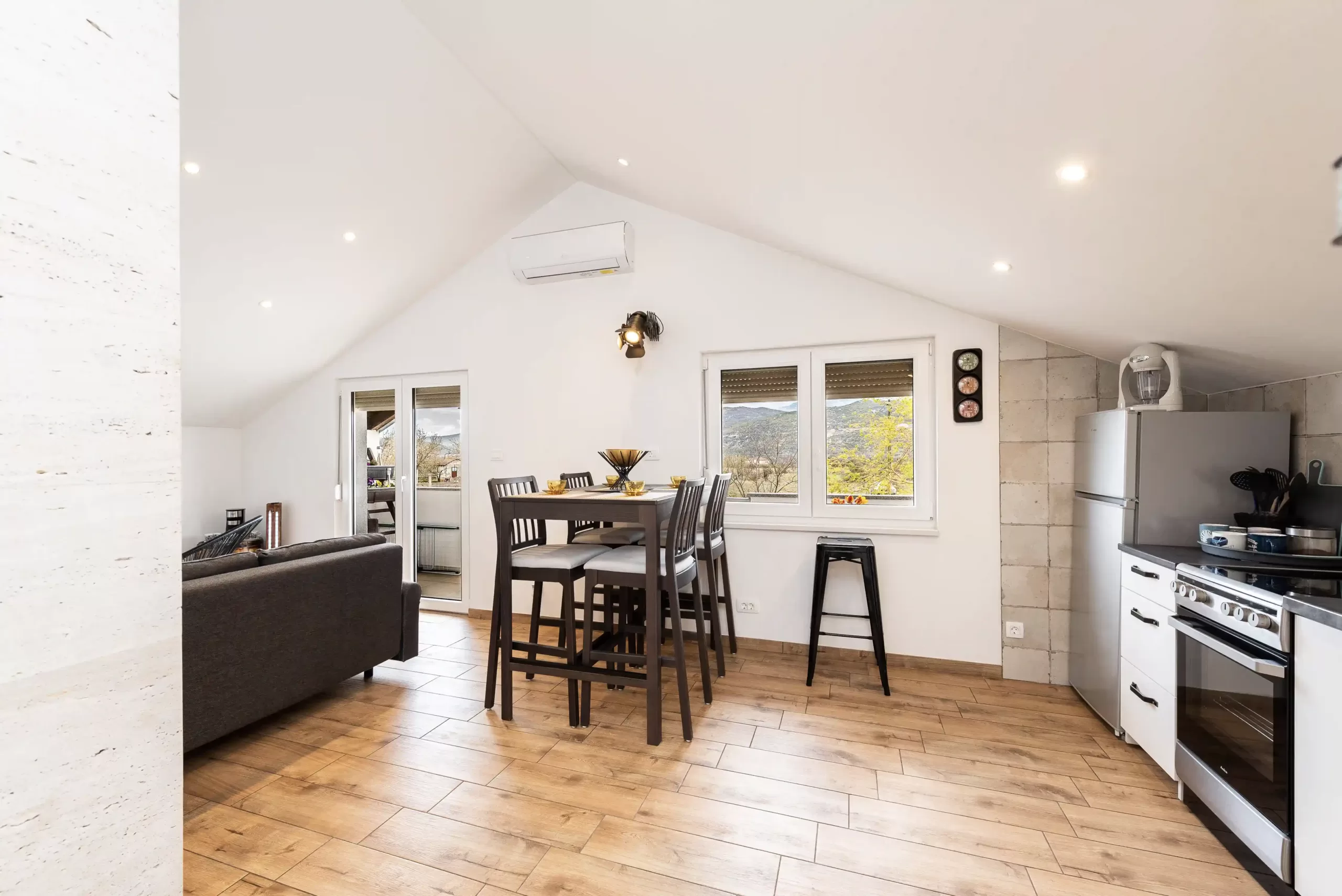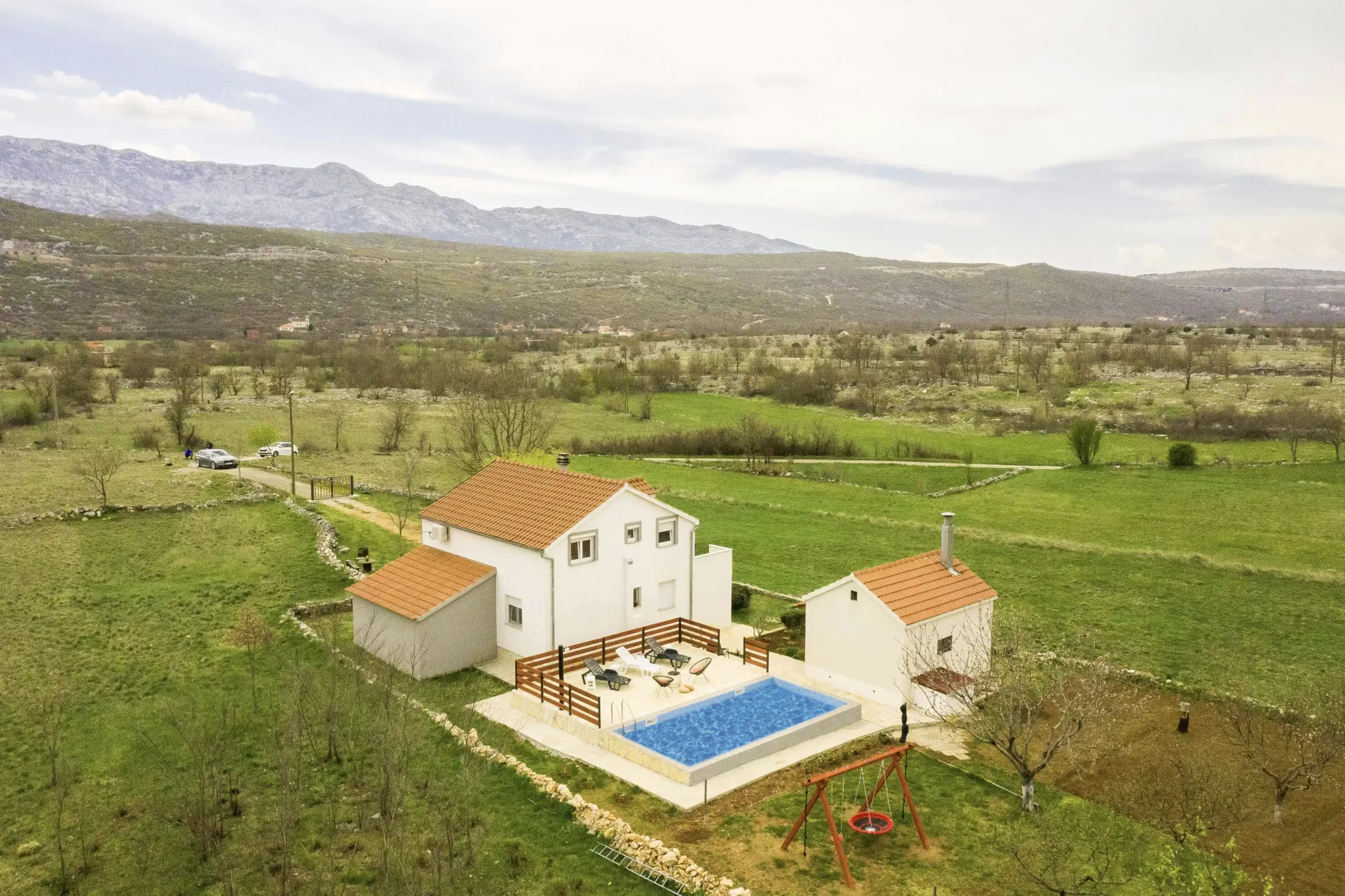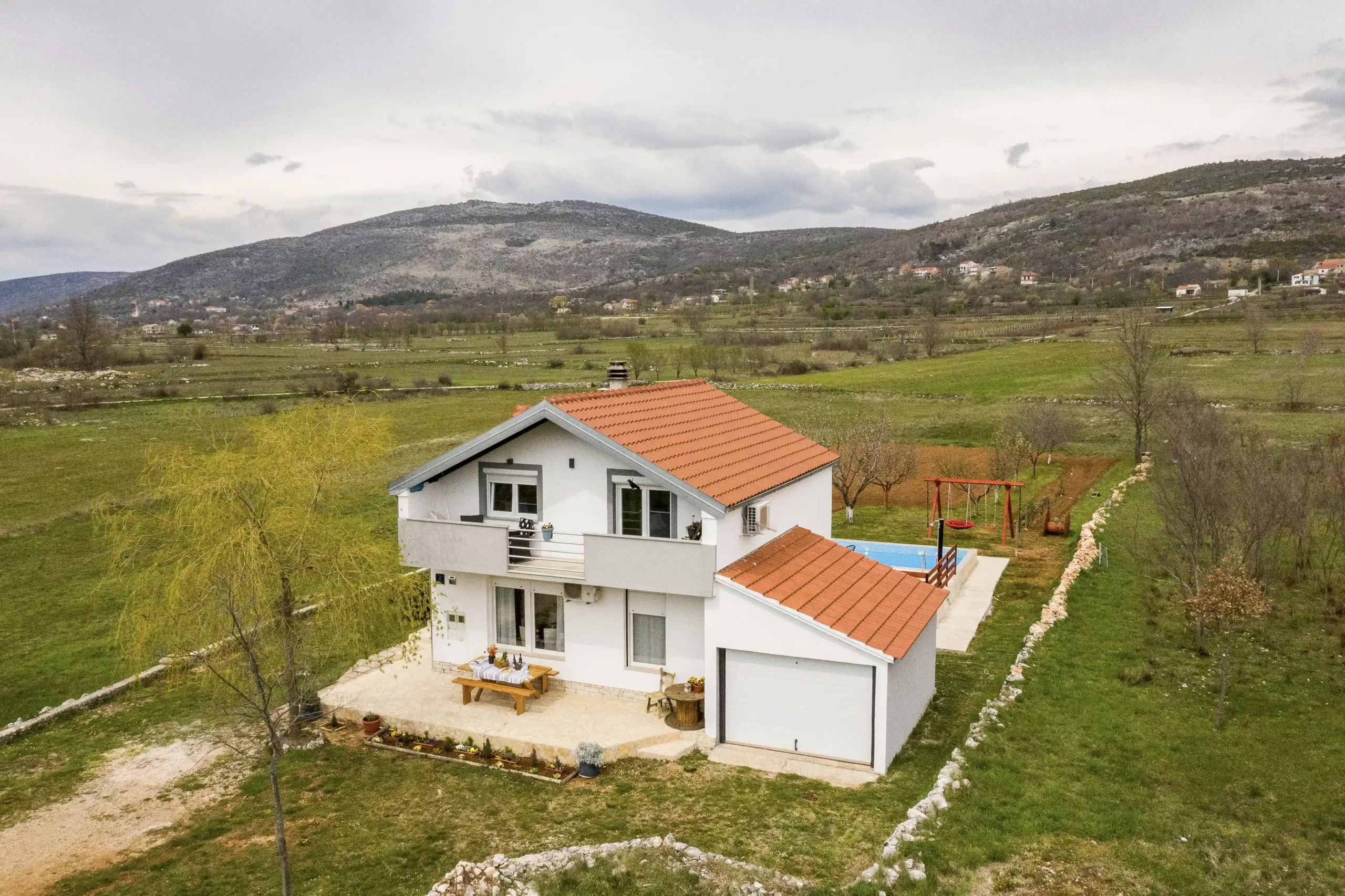 Indulge in the serene and tranquil ambiance of the countryside as you retreat to this stunning villa, accommodating up to 8 guests. The villa itself is thoughtfully designed, spanning two floors interconnected by an external staircase, offering a sense of privacy and spaciousness. Surrounded by breathtaking mountain views and verdant fields, it offers a peaceful retreat from city life. Guests can relax by the pool, stroll through the garden, or enjoy evenings on the terrace, complete with outdoor amenities like a barbecue area. This villa promises a rejuvenating escape where guests can unwind and create lasting memories amidst nature’s tranquility.